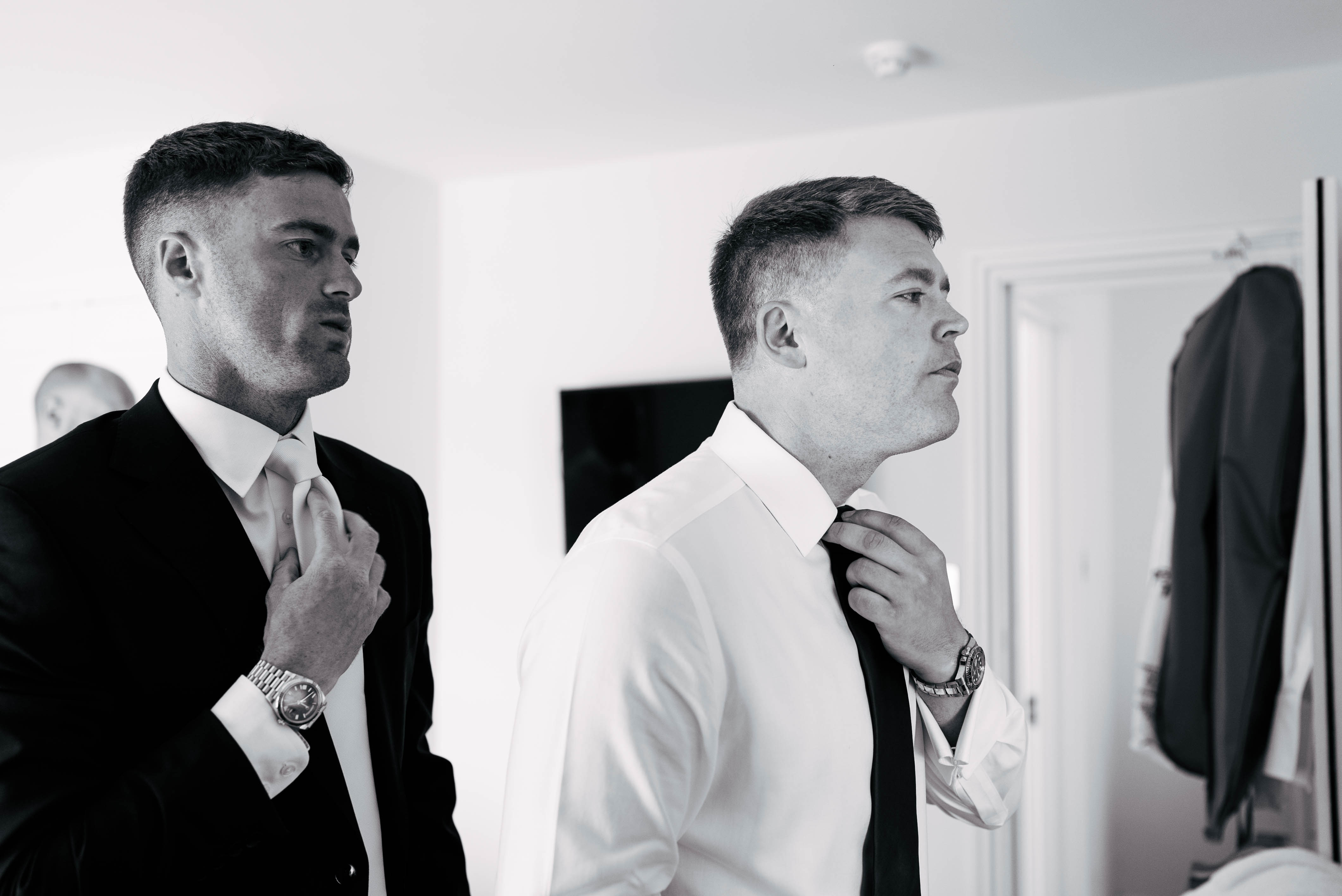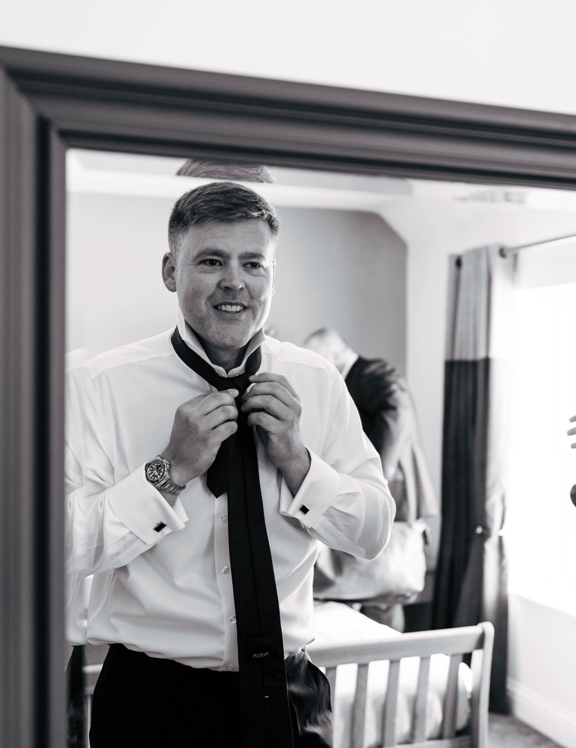 James was getting ready with the boys in the courtyard rooms, also super relaxed with loads of great banter. We did both wedding photography and videography. Hedi takes a lot the photos while Mark is capturing all the moments on his filming camera.