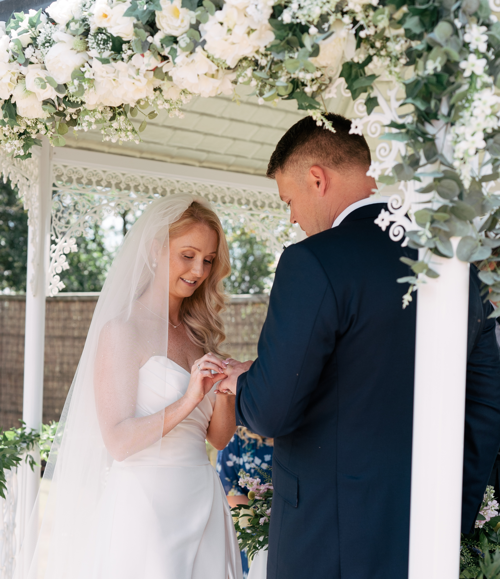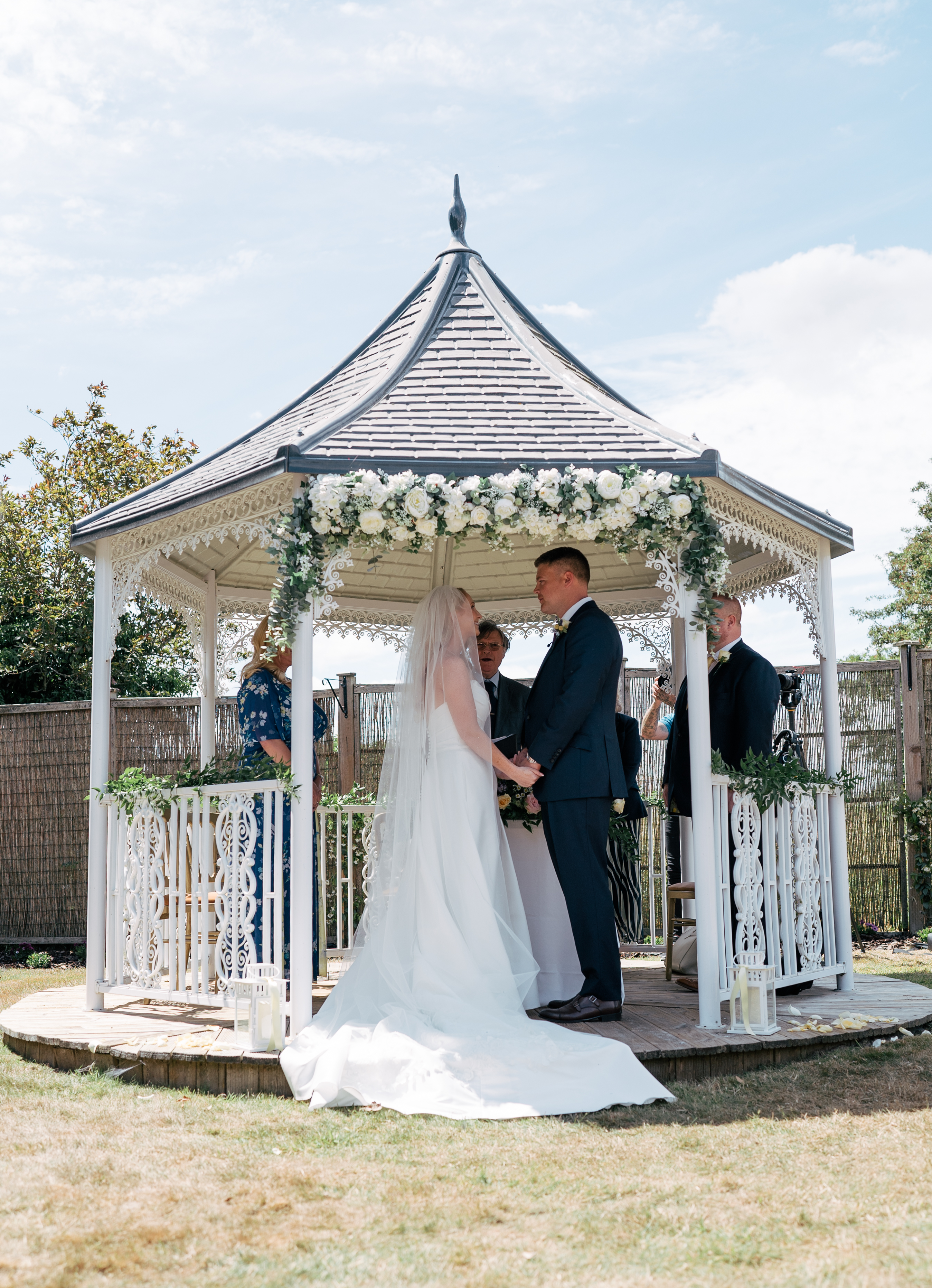 The ceremony was held inĀ their beautiful gardens for in the cuteĀ pergola . TheyĀ made the most of the beautiful weather and said ā€˜I do’ surrounded byĀ stunning gardens, countryside and their friends and family.